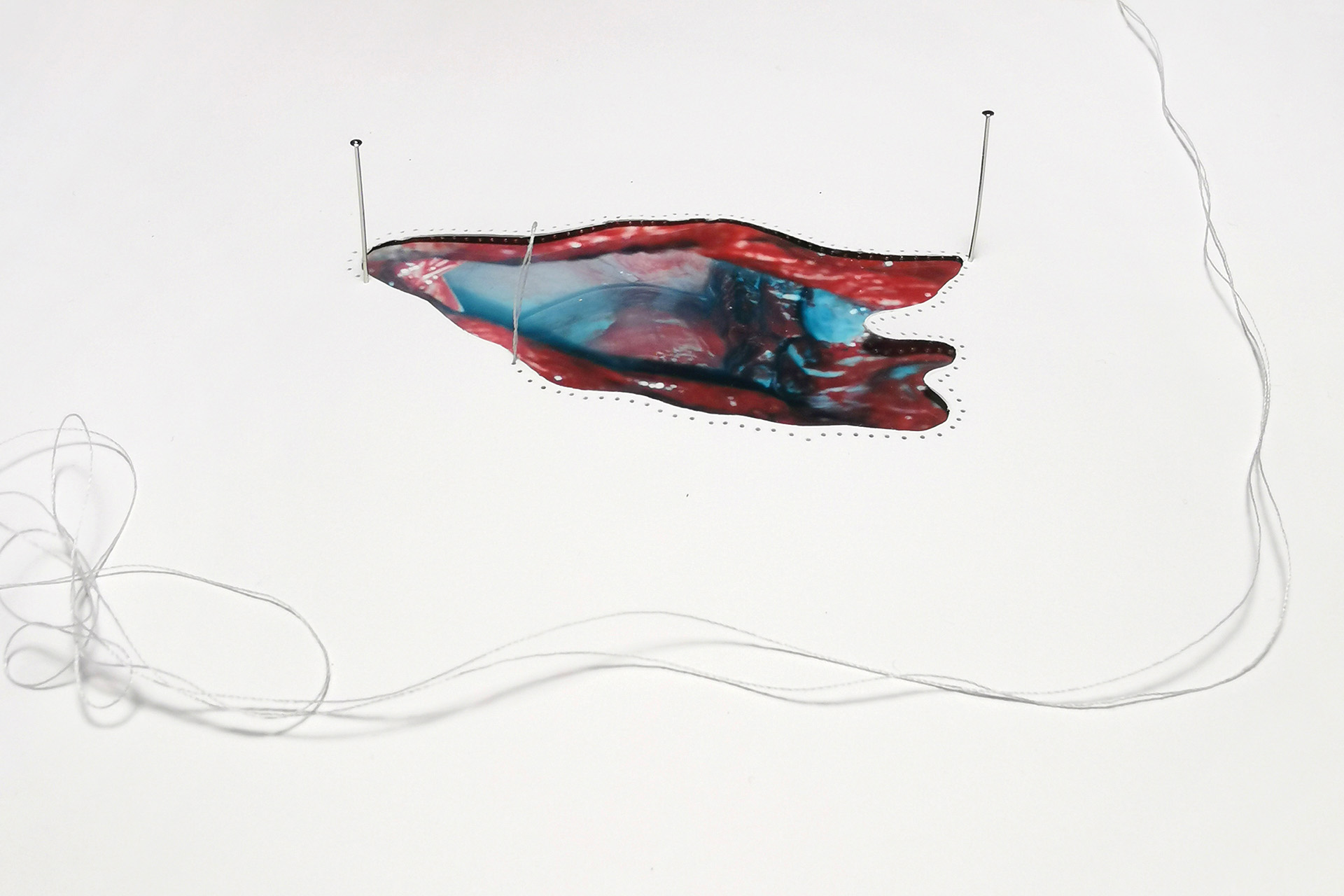 Gudny Rosa Ingimarsdottir’s artistic practice could be compared to a spider web inasmuch as it is born out of an infinite amount of delicate and mysterious connections that endlessly reconfigure her production, which appears to us, in each presentation, renewed in its form as in its very materiality. Thus, nothing is ever fixed in a clearly defined temporality and it is even truer when taking the angle of her photography work. The photosensitive surface has always known how to subtly slip into the cracks of her paper compositions, even arising in different places as to better inhabit the space that it has been given ; a presence that tends to affirm itself over the course of the years in order to assert itself steadily in a number of the artist’s recent compositions.